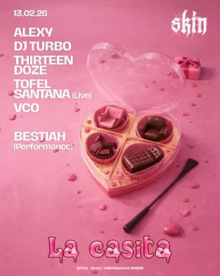 LA CASITA X Skin on February 13, 2026 at Skin, Madrid features Alexy, DJ TURBO, THIRTEEN DOZE and VCO performing DJ sets.