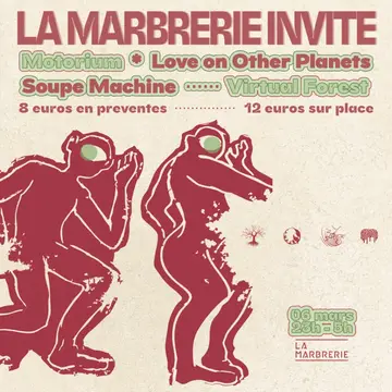 La Marbrerie invite: Soupe Machine + Motorium + Virtual Forest + LOOP takes place at La Marbrerie in Paris, France on Friday, March 6, 2026. Featuring Fluid Matter. Techno, Bass.