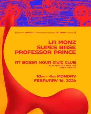 la Monz, Supes Base, Professor Prince at Bossa Nova on February 16, 2026 at Bossa Nova Civic Club, New York features la Monz and Supes Base performing techno DJ sets.