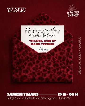 La Rotonde x MÉSOS takes place at La Rotonde Stalingrad in Barcelona, Spain on Saturday, March 7, 2026. Trance, Acid.