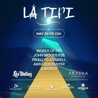 La Tipi on May 8, 2026 at Akasha Las Dalias Club - Ibiza, Ibiza features John Woods, Paulo PG, Awka and Panyer performing DJ sets.