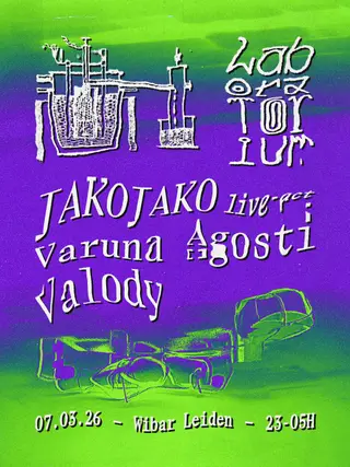 Laboratorium with JakoJako on March 7, 2026 at Wibar, Amersfoort features JakoJako and Valody performing techno DJ sets.