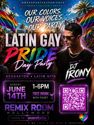 Latin Gay Pride Day Party WPE on June 14, 2026 at TBA - REMIX ROOM HOLLYWOOD, Los Angeles features electronic music performances reggaeton DJ sets.