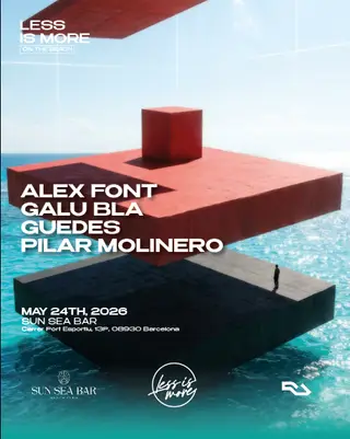 Less is More on the BEACH takes place at Sunseabar Beach Club in Barcelona, Spain, on May 24, 2026. The event features a lineup focused on Minimal Techno. Galu Bla is known for his intricate rhythms and has been recognized in the underground electronic scene. Guedes, hailing from Spain, brings a local flavor to the lineup with his distinct Minimal Techno style. PILAR MOLINERO rounds out the event, contributing her unique approach to the genre. This event showcases a range of artists contributing to the Minimal Techno genre.
