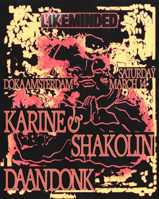Likeminded with Karine & Shakolin, Daan Donk on March 14, 2026 at Doka, Amsterdam features Karine, Shakolin and Daan Donk performing techno DJ sets.