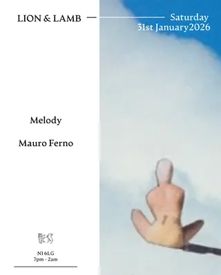 Lion & Lamb with Melody + Mauro Ferno on January 31, 2026 at The Lion and Lamb, London features Melody RA+RE and Mauro Ferno performing DJ sets.
