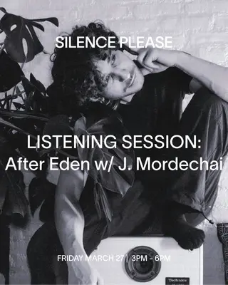 LISTENING SESSION: After Eden with J. Mordechai takes place at Silence Please in New York City, United States on March 27, 2026. Featuring J. Mordechai.