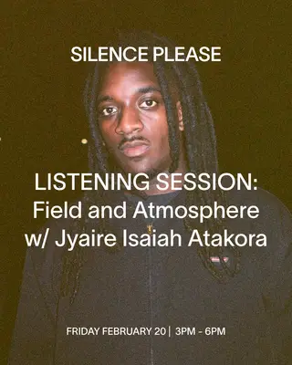 LISTENING SESSION: Field and Atmosphere with Jyaire Isaiah Atakora takes place at Silence Please in New York, United States on February 20, 2026. Ambient and Experimental sounds all night.