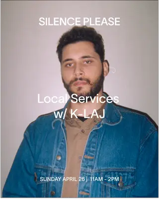 LISTENING SESSION: LOCAL SERVICES with K-LAJ takes place at Silence Please in New York City, United States on April 26, 2026. Featuring Khalil Lajmi. Downtempo sounds all night.
