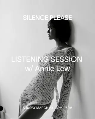 LISTENING SESSION with Annie Lew takes place at Silence Please in New York City, United States on March 29, 2026. Featuring Annie Lew.