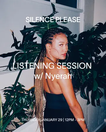 LISTENING SESSION with Nyerah takes place at Silence Please in New York, United States on Thursday, January 29, 2026. Jazz, R&B.