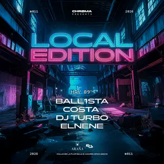 LOCAL EDITION: BALL1STA, COSTA , DJ TURBO, ELNENE on May 9, 2026 at Araña Club, Madrid features electronic music performances techno DJ sets.