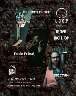 Loop presents: INNER MOTION takes place at Loop in Vienna, Austria on May 13, 2026. Featuring Fede Frostl, Edictum. Progressive House and Electronica sounds all night.