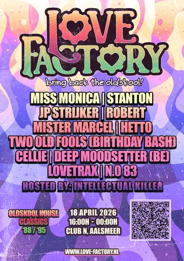 Love Factory Aalsmeer takes place at N201 in All, Netherlands on Saturday, April 18, 2026. Featuring HETTO. House, Acid.