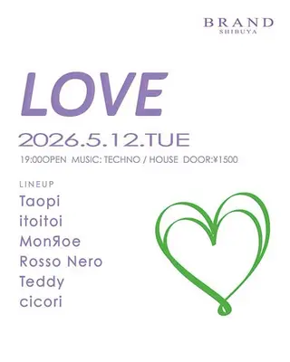 LOVE on May 12, 2026 at BRAND SHIBUYA, Tokyo features electronic music performances techno DJ sets.