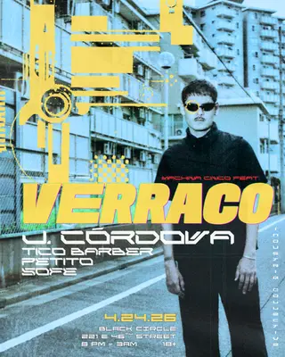 Machina CINCO featuring Verraco on April 24, 2026 at TBA - Black Circle, Indiana features Verraco, J. Córdova, Tico Barber and Petito performing techno DJ sets.