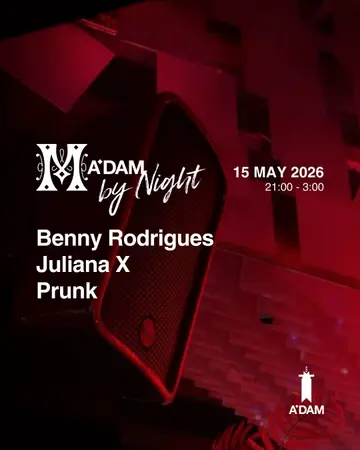 Set at Madam, Madam by Night: A'DAM 10 Years 2026 brings together artists and fans in Amsterdam on Friday, May 15, 2026, featuring Juliana X, Benny Rodrigues, Prunk and 0 more artists. This event brings together artists and fans who share a passion for dance music culture and House, Deep House sounds.