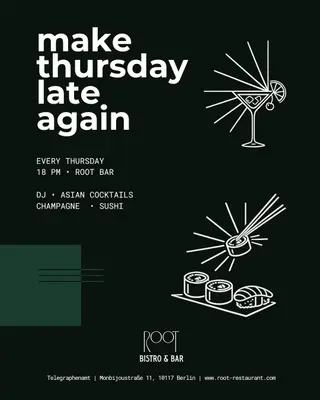 Make Thursday Late Again takes place at Hotel Telegraphenamt -1 in Berlin, Germany on April 9, 2026. House and Afro House sounds all night.