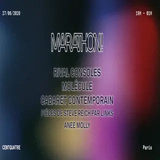 MARATHON! at CENTQUATRE: Rival Consoles, Molécule, Cabaret Contemporain, Links, Anee Molly on June 27, 2026 at 104 CENTQUATRE, Paris features Rival Consoles, Molécule and Anee Molly performing electro DJ sets.