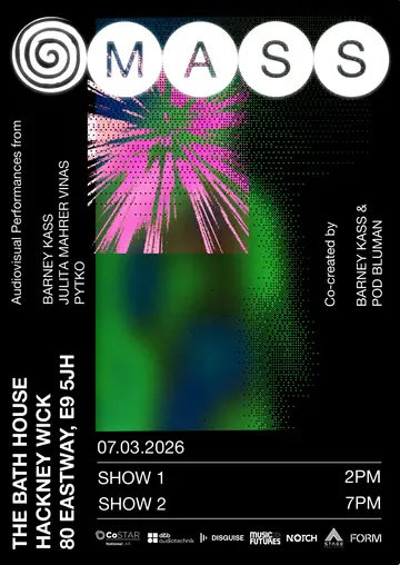 MASS takes place at The Bath House in London, United Kingdom on Saturday, March 7, 2026. Featuring PYTKO. Experimental.