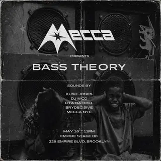 MECCA NYC presents: BASS THEORY takes place at Empire Stage in New York City, United States on May 16, 2026. Featuring Kush Jones, Dj Nico, LITA DA DOLL, Brydecisive. Bass and Club sounds all night.