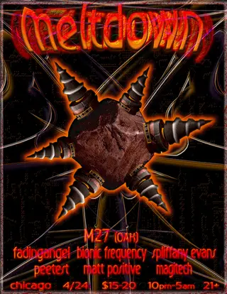 MELTDOWN takes place at TBA in Chicago, United States on April 24, 2026. Featuring M27 (1), spliffany evans. Hardcore and Jungle sounds all night.