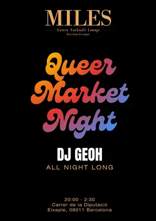 MILES: After Queer Market on April 25, 2026 at Miles Lounge Bar, Barcelona features electronic music performances house DJ sets.