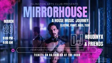 MIRRORHOUSE: A JOURNEY FROM CLASSIC HOUSE TO FUNKY AND TECH takes place at Islington Arts Club in London, United Kingdom on March 28, 2026. Featuring Houdinyx. House, Tech House.
