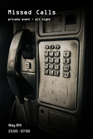 Missed Calls takes place at TBA - Private Location in Berlin, Germany on May 8, 2026. Featuring Fading Franz, Luke Shirwin, b̶e̶n̶e̶. Techno and House sounds all night.