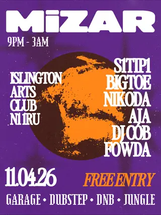 MiZAR takes place at Islington Arts Club in London, United Kingdom on April 11, 2026. A blend of Drum & Bass and Dubstep.