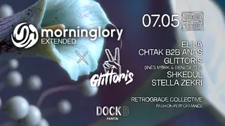 Morninglory x Glittoris [Extended] on May 7, 2026 at DOCK B, Paris features Stella Zekri, Shkedul, DJ Benedetta, Inès MBRK, Chtak. and Eliot Sheperd performing techno DJ sets.