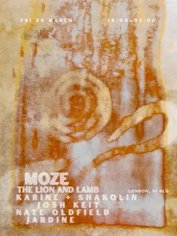 MOZE at the Lion & Lamb with Karine & Shakolin takes place at The Lion and Lamb in London, United Kingdom on Friday, March 20, 2026. Featuring Karine, Shakolin, Josh Keit, Oldfield and 1 more.