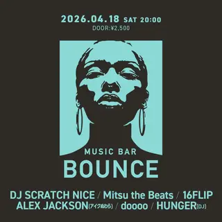 Music BAR Bounce on April 18, 2026 at Music BAR Bounce, Tokyo features electronic music performances hip-hop DJ sets.