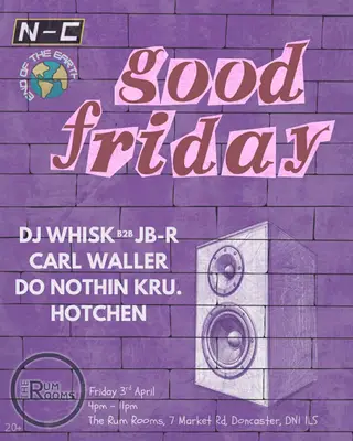 N-C x EOTE presents: Rum Rooms - Good Friday takes place at The Rum Rooms in North, United Kingdom on April 3, 2026. Featuring Carl Waller. Expect Minimal and Ghetto Tech throughout the night.