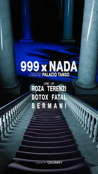 Nada x 999 pres. Roza Terenzi takes place at Palacio Tango in Manchester, United Kingdom on February 21, 2026. Featuring Roza Terenzi, Bermani. Techno and House sounds all night.