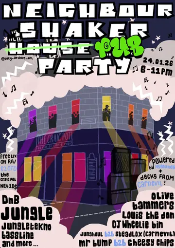 Neighbour Shaker Pub Party takes place at TBA - The Craic Pot in Paris, France on Saturday, January 24, 2026.