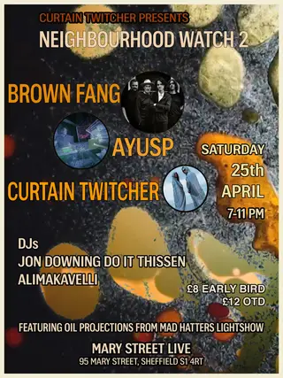 Neighbourhood Watch 2 takes place at Mary St Live in Sheffield, United Kingdom on April 25, 2026. Experimental and Electronica sounds all night.