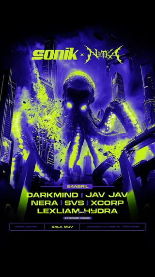 NEOTIKA x SONIK on April 24, 2026 at Sala Muv, Madrid features Nera performing DJ sets.