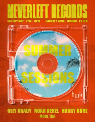 Neverleft Records - Summer Sessions (Vol 3) on May 30, 2026 at HWK, London features Harry Bone and Olly Brady performing house DJ sets.
