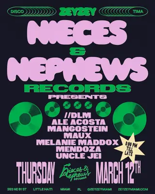 Nieces & Nephews Records presents on March 12, 2026 at ZeyZey, Detroit features //DLM, Ale Acosta, maux and Uncle Jei performing DJ sets.
