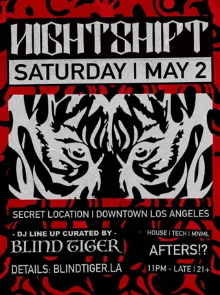 Set at The Lexington, NIGHTSHIFT AFTER HOURS 2026 brings together artists and fans in Los Angeles on Saturday, May 2, 2026. This event brings together artists and fans who share a passion for dance music culture and Tech House, Minimal sounds. The Lexington has hosted Tech House events in Los Angeles as part of the area's regular club programming. It draws fans seeking authentic Tech House music in Los Angeles. Designed for a discerning audience, The Lexington's programming draws fans of Tech House music across Los Angeles. The production is designed to showcase the depth and diversity of contemporary electronic music.