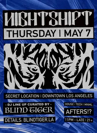 NIGHTSHIFT AFTER HOURS on May 7, 2026 at TBA - DM @NIGHTSHIFT.LA ON INSTAGRAM FOR ADDRESS, Los Angeles features electronic music performances tech house DJ sets.