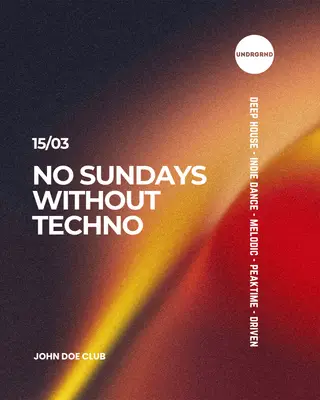 No Sundays Without Techno takes place at John Doe in Amsterdam, Netherlands on March 15, 2026. Featuring Alex Sharp. Techno sounds all night.