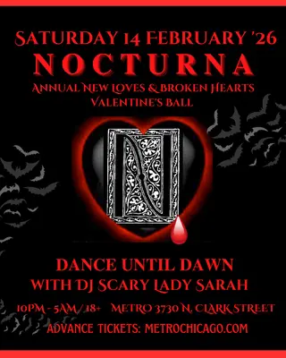Nocturna 'New Loves & Broken Hearts' Valentine's Ball takes place at Metro in Chicago, United States on February 14, 2026. Industrial and Post-Punk sounds all night.