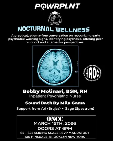 Nocturnal Wellness: A Talk On Wellness and Sound bath with Bobby Molinari and Mila Gama takes place at Qncc in New York City, Unknown on Thursday, March 12, 2026. Featuring bobbygotback, Mila Gama.