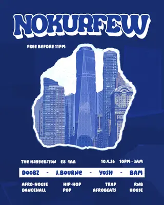 Set at The Haggerston, NoKurfew 2026 brings together artists and fans in London on Friday, April 10, 2026. This event brings together artists and fans who share a passion for dance music culture and Hip-Hop, Afro House sounds. The Haggerston has hosted Hip-Hop events in London as part of the area's regular club programming. It draws fans seeking authentic Hip-Hop music in London. Designed for a discerning audience, The Haggerston's programming draws fans of Hip-Hop music across London. The production is designed to showcase the depth and diversity of contemporary electronic music.