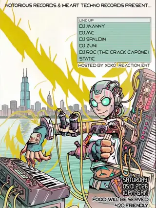 Notorious Records X IHeartTechno Records takes place at TBA in Chicago, United States on May 1, 2026. Featuring DJ Manny, DJ MC. Footwork and Ghetto Tech sounds all night.