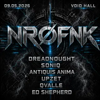 NRØFNK with Dreadnought (CAN), Soniq, Antiquis Anima, Upzet, Qvalle, Ed Shepherd on May 9, 2026 at Void Hall, Berlin features Soniq, Antiquis Anima, Upzet and Ed Shepherd performing drum & bass DJ sets.