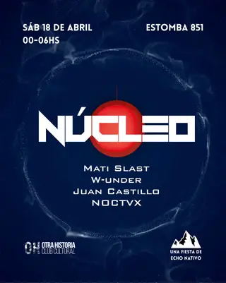 Núcleo on April 18, 2026 at Otra Historia Club Cultural, Buenos Aires features electronic music performances techno DJ sets.