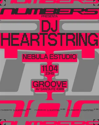 Numbers pres. DJ HEARTHSTRING takes place at Groove in Buenos Aires, Argentina on April 11, 2026. Featuring DJ Heartstring. Trance and House sounds all night.